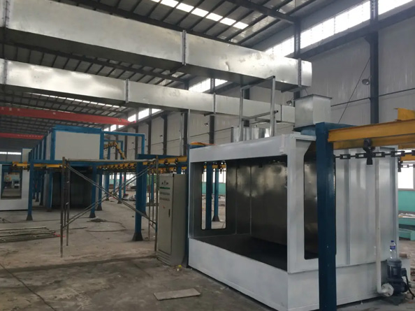 噴漆流水線菠萝福利导航適用於工件表麵的噴漆、噴塑處理,多用於單件或小批量工件的塗裝作業,配合懸掛輸送機、電軌小車、地麵輸送機等運送機械形成運輸作業。